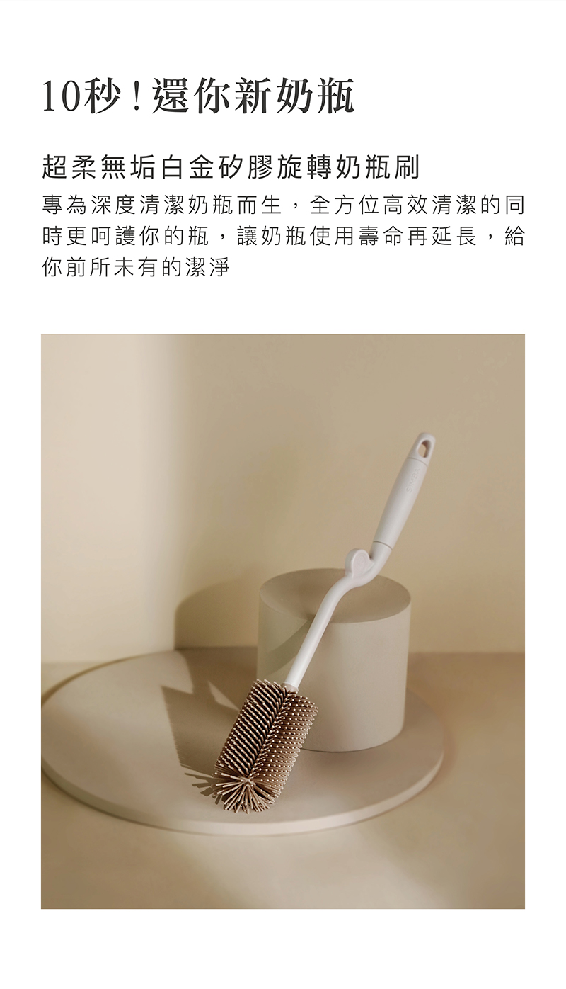 10秒!還你新奶瓶,專為深度清潔奶瓶而生,全方位高效清潔的同時更呵護你的瓶,讓奶瓶使用壽命再延長,給你前所未有的潔淨。