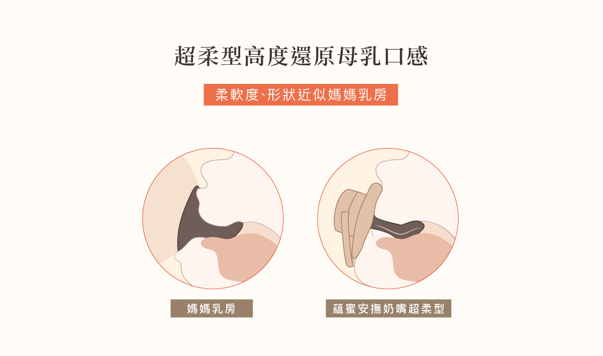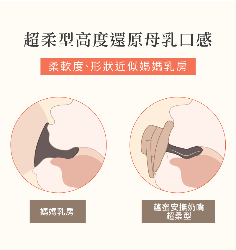 接近母乳般的溫柔觸感,快速安撫寶寶情绪,減少哭鬧、降低哄睡難度,並獲得安全感。