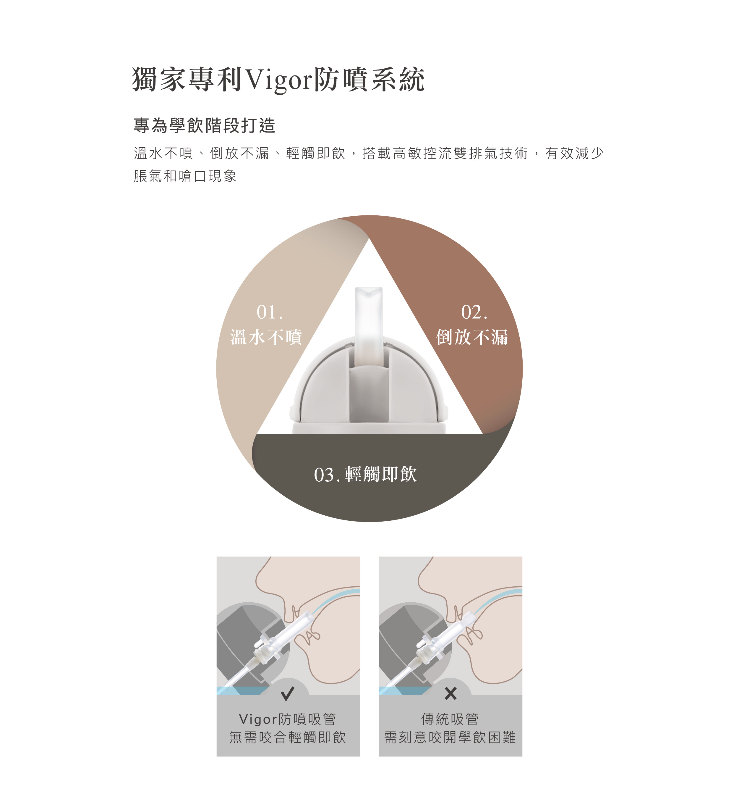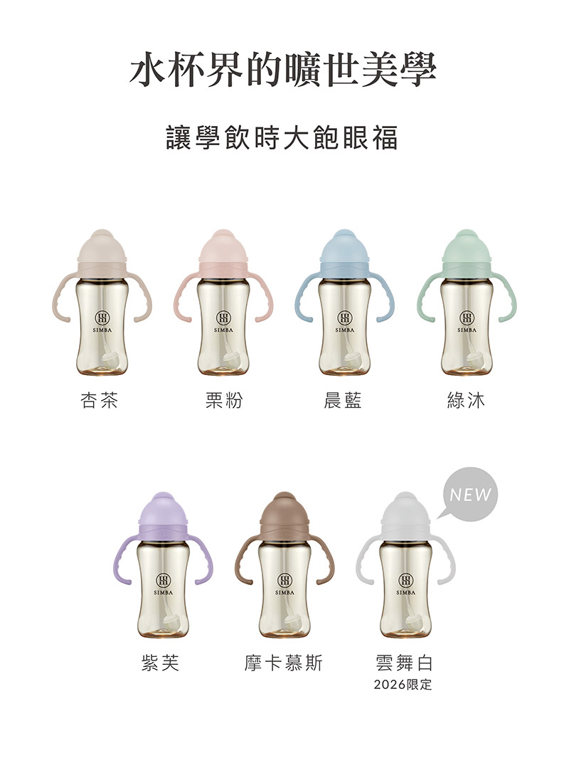 蘊蜜鉑金PPSU防漏滑蓋學習水杯系列,專為學飲階段打造,升級新一代防噴吸管,倒放不漏、溫水不噴,搭配獨家省力滑蓋,小手也好開好關。